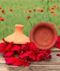 El Aker Fassi se elabora con pétalos de amapola y corteza de granada que se secan al sol y se muelen hasta formar un polvo fino. Este polvo se mezcla con agua y se seca sobre una vasija de barro, creando una pastilla que libera un pigmento rojo al contacto con la humedad.